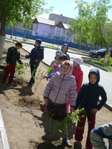 Вот мы и заканчиваем 1 класс. Учебный год подошёл к концу. И мы решили посадить деревья или одно дерево, чтобы оно ещё 8 лет росло вместе с нами, и дальше радовало всех вокруг. Родители помогли нам, привезли саженцы, мама с папой Аймиры Бейсеновой привезли черенки гибискуса - это такой кустарник, когда он вырастет он будет цвести большими цветами до 3 месяцев летом. Папа Якова Микула привёз саженцы сирени. Теперь участок около школы будет утопать в цветении, весной - сирень, а летом - гибискус. А папа Тамирлана Тюлюбаева привёз саженцы наших местных деревьев карагача и клёна. Ими мы высадили аллею возле школы -интерната. Ребятам очень понравилось помогать взрослым в посадке деревьев и в украшении участка школы. А со временем наши деревья вырастут и будут радовать всех вокруг своей зеленью и цветами. «Это